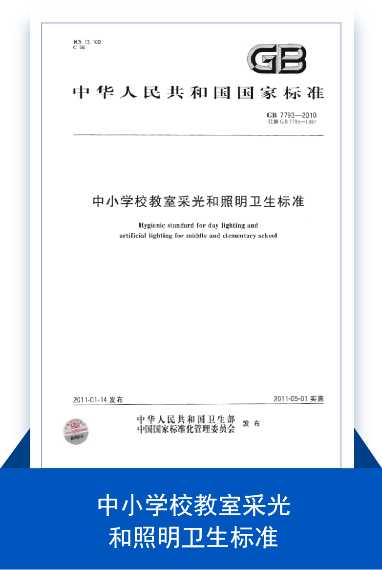 2018年8月30日,教育部、國家衛生健(jiàn)康委員會、國(guó)家體育總局等相關政府部門聯合印發(fā)《綜合防(fáng)控兒童(tóng)青(qīng)少年近視實(shí)施方案》。同時《方案》特別要求(qiú),學校教室照(zhào)明衛生標準達標率為(wéi)100%