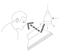直接眩光:視野內裸露光源光線直接進入人眼        反射眩光:光源經過反射射入人眼
