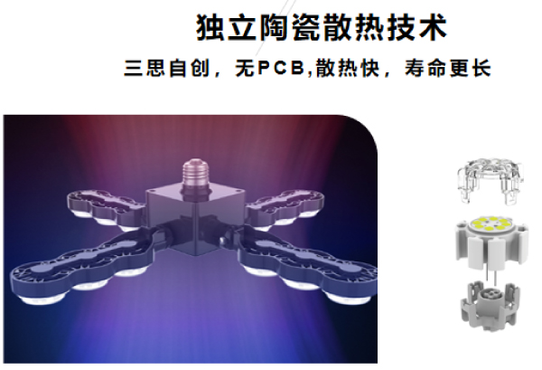 采用1600℃℃高溫燒結的優質陶瓷作為散熱體,散(sàn)熱(rè)良好且彌補了傳統鋁基板漏電隱患。外觀鏤空設計,增加自然對流效率,通風散熱(rè)光(guāng)衰小,性(xìng)能穩定。