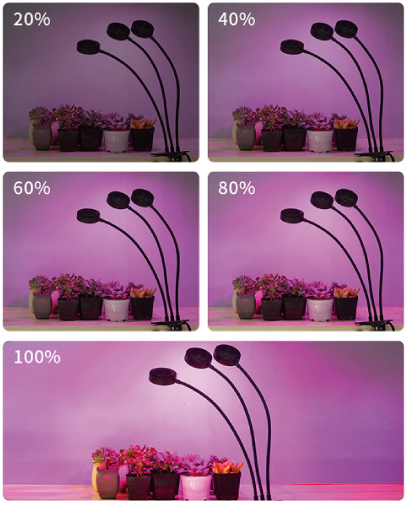 它在不同亮度模式下,所釋放的光子(zǐ)數(shù)目不同,當亮度增大時也就意味著光子數目(mù)會增多。您(nín)可以通過選擇20%、40%、60%、80%、100%不同亮度,為家裏的小番茄、多肉(ròu)補充光照。