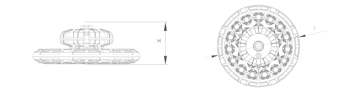 C2300-BE-180W/200W | 176 ~ 264 VAC 50/60Hz | ≥ 80 | 30º/60º/90º/120º | PC + 陶瓷像素(sù) | 掛鉤 / 吊杆 / 吊鏈 | 常亮/DALI/0-10V | Φ341*H134mm | 約3.44KG |