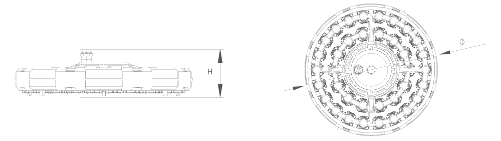 C2300-CE-200W | 176 ~ 264 VAC 50/60Hz | ≥ 80 | 30º/60º/90º/120º | PC + 陶瓷像素(sù) | 掛鉤 / 吊杆 / 吊鏈(liàn) | 常亮/DALI/0-10V | Φ370*H78.5mm | 約(yuē)3.18KG |