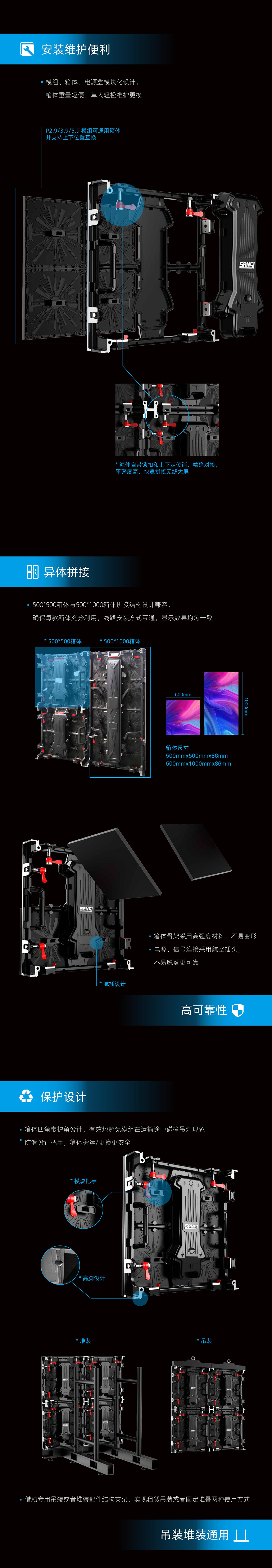 VR係列是為租賃市場量身打(dǎ)造的一款高性價比室內全彩顯示屏產品。壓鑄鋁(lǚ)一體成型的箱體輕(qīng)、薄,平整度高,易(yì)拚接、無縫隙,單(dān)人可快速安(ān)裝。安裝方(fāng)式(shì)靈活,滿足各(gè)種不同場(chǎng)合需求。1:1顯示(shì)寬高比,輕鬆拚接不同比例大屏。箱體造型美(měi)觀(guān)、走線(xiàn)簡(jiǎn)潔。適用於大型會議、展覽、演出、企業活動等各種(zhǒng)室內活動場景。