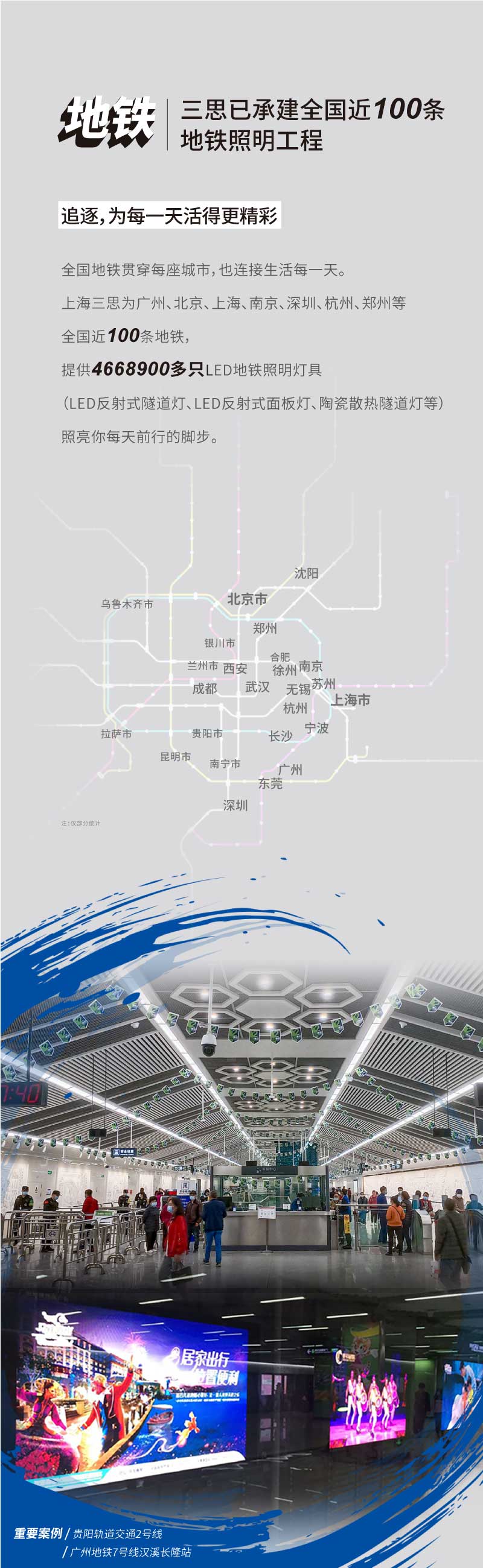 貴(guì)陽軌道交通2號線於2021年4月28日全線開通,全線總長41.5公裏,共32座(zuò)車站。其中,上海色多多AV导航服務共(gòng)完成(chéng)了此項目一期12站(公共區和(hé)區間隧道(dào))、二期4站(設備(bèi)區)的照明設備供應,共(gòng)計LED燈具數量達30000套。