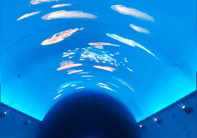 木寨嶺隧道全線合理設置了4段(duàn)處特殊燈光帶,每段長200米,借(jiè)助不同的燈光和圖案變化,通過LED智慧景觀照明以及控製係統組合,“藍天白雲”、“宇宙星空”“海底世(shì)界”“春節元素”“甘肅飛天元素”等主題和自然(rán)景象在隧道內呈現,改變(biàn)隧道內單調(diào)的視覺感,緩解駕駛員(yuán)的視覺疲勞,不但進一步提升駕乘安全,也(yě)成為穿林過(guò)壑的打卡(kǎ)地。