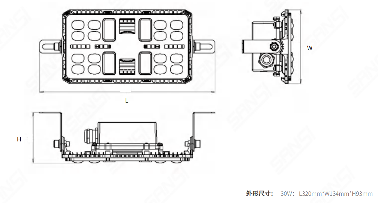30W ≥0.95 110lm/W 3000K/4000K/5000K ≥70 IP66